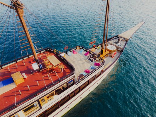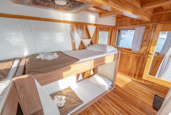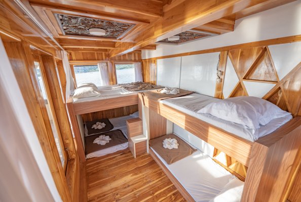Each of the 12 cabins are equipped with air conditioning and 11 private private ensuite bathroom capacity 22-28 Pax.