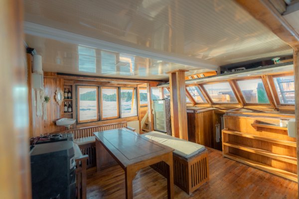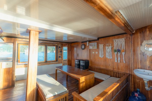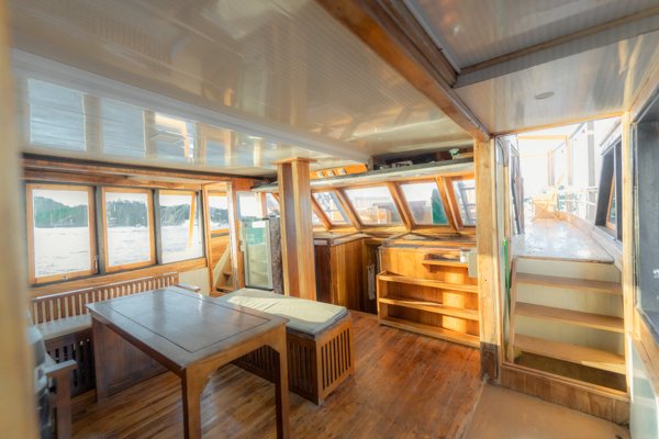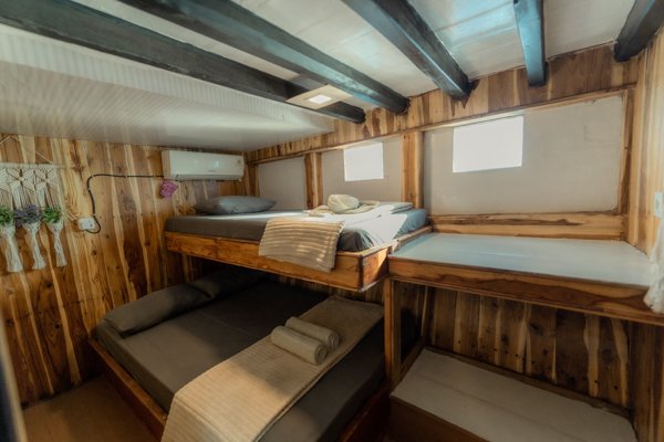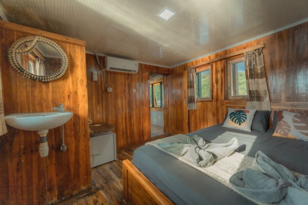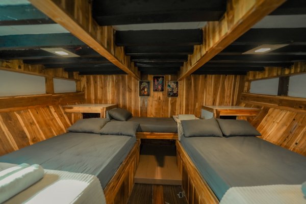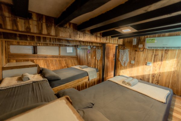 Each of the 6 cabins are equipped with air conditioning, 3 private private ensuite bathroom and 2 shared bathroom capacity 17-18 Pax.
