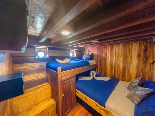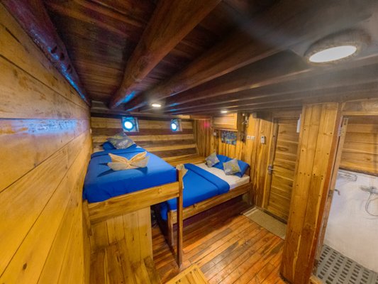 Each of the 8 cabins are equipped with air conditioning and 8 private private ensuite bathroom with hot shower in each cabin capacity 21-25 Pax.
