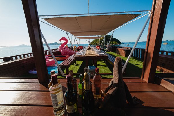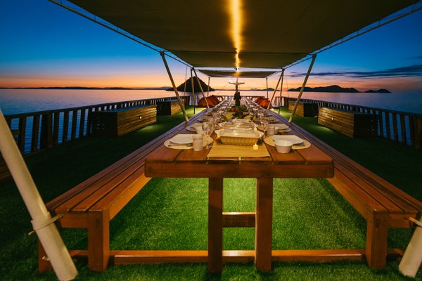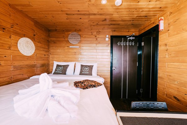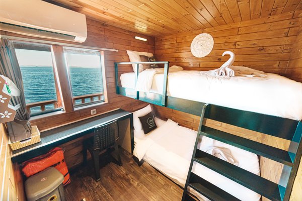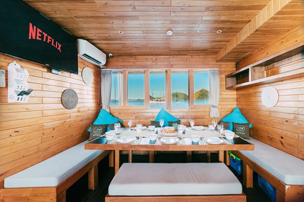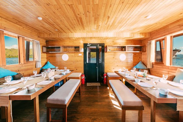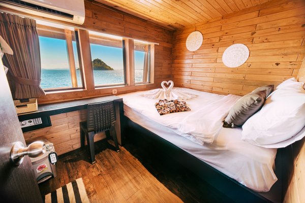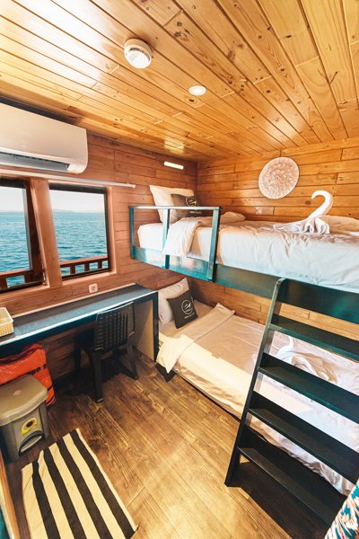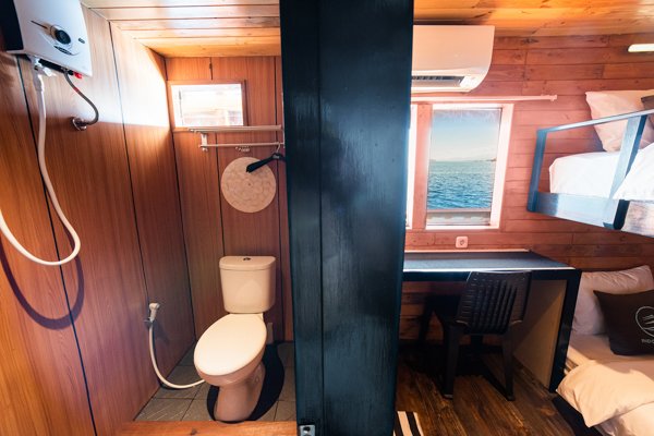 Each of the 10 cabins are equipped with air conditioning and 10 private private ensuite bathroom with hot shower in each cabin capacity 20-26 Pax.
