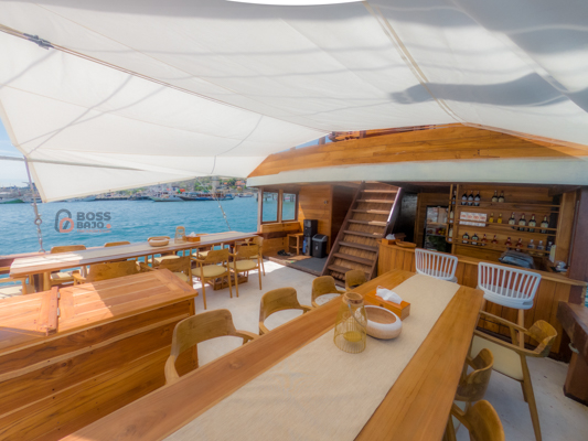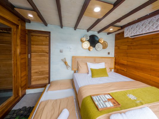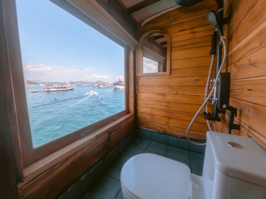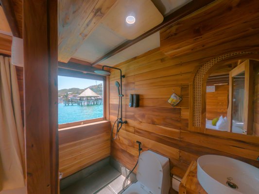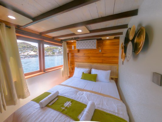 Each of the 8 cabins are equipped with air conditioning and 8 private private ensuite bathroom with hot shower in each cabin capacity 21-25 Pax.